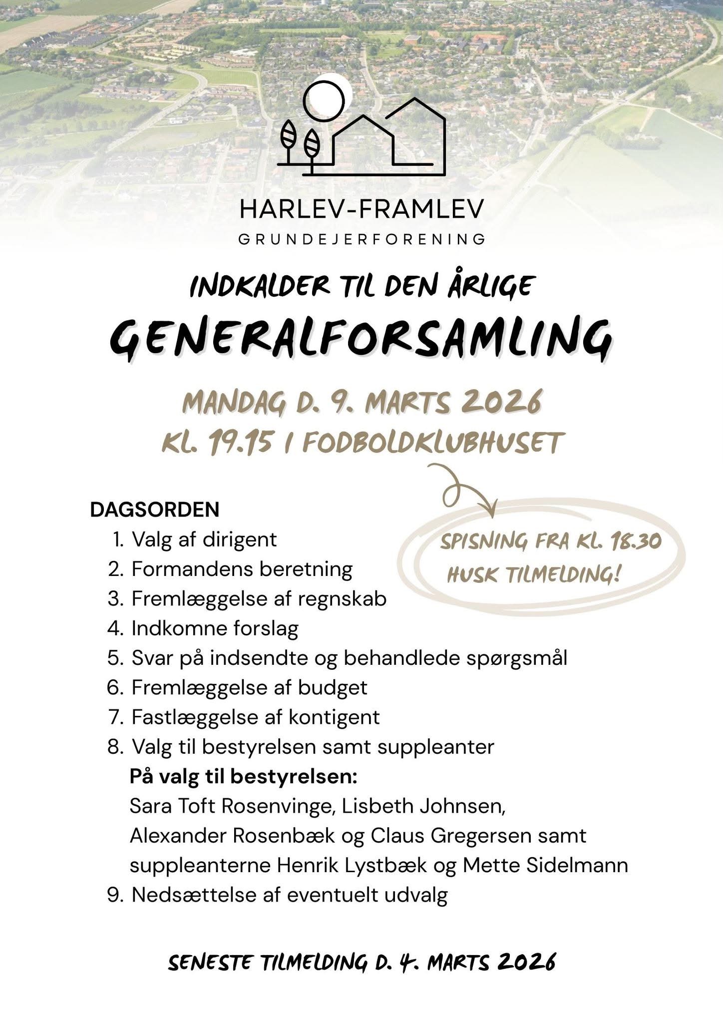 Inden selve generalforsamlingen vil vi gerne byde på aftensmad kl. 18.30 – info omkring menu følger senere.
